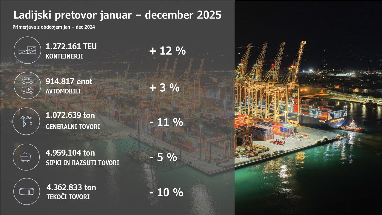 Skupni ladijski pretovor je bil s 23.003.522 tonami na ravni pretovora v letu 2024. V lanskem letu smoskupno privezali 1.751 ladij, kar je nekaj manj kot v letu 2024, smo pa zato razložili oz. naložili več vlakov (20.886) in vagonov (270.516) ter tovornjakov (490.819). Kljub omejitvam zaradi posodobitev železniškega omrežja se je razmerje pretovora po cesti oz. železnici v lanskem skupnem pretovoru znova prevesilo v korist železnice in je znašalo 51 odstotkov.